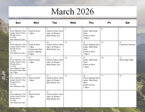 Meet at the church for a time of focused prayer and praise. "For where two or three are gathered together in my name, there am I in the midst of them." - Matthew 18:20